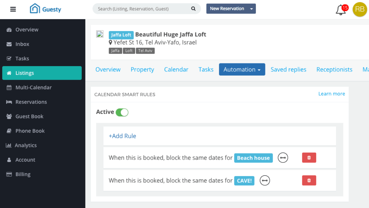 - Missing key features: Guesty could not offer such an option as owner-specific reservations.